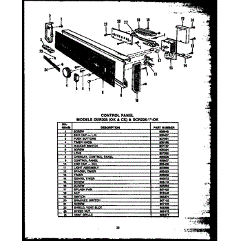 Parts for Caloric DCR-225-1C-OK: Control Panel (Dur-205-19-Ok) (Dur-205-19-Ck) (Dcr-225-1D-Ok) (Dcr-225-1V-Ok) (Dcr-225-1F-Ok) (Dcr-225-1N-Ok) (Dcr-225-1C-Ok) Parts