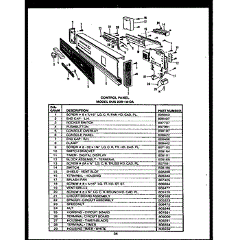 Parts for Caloric DUS207-19-OA: Control Panel (Dus208-19-Oa) Parts