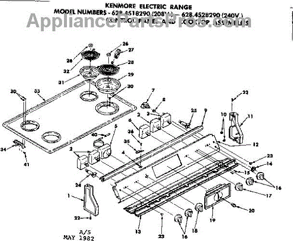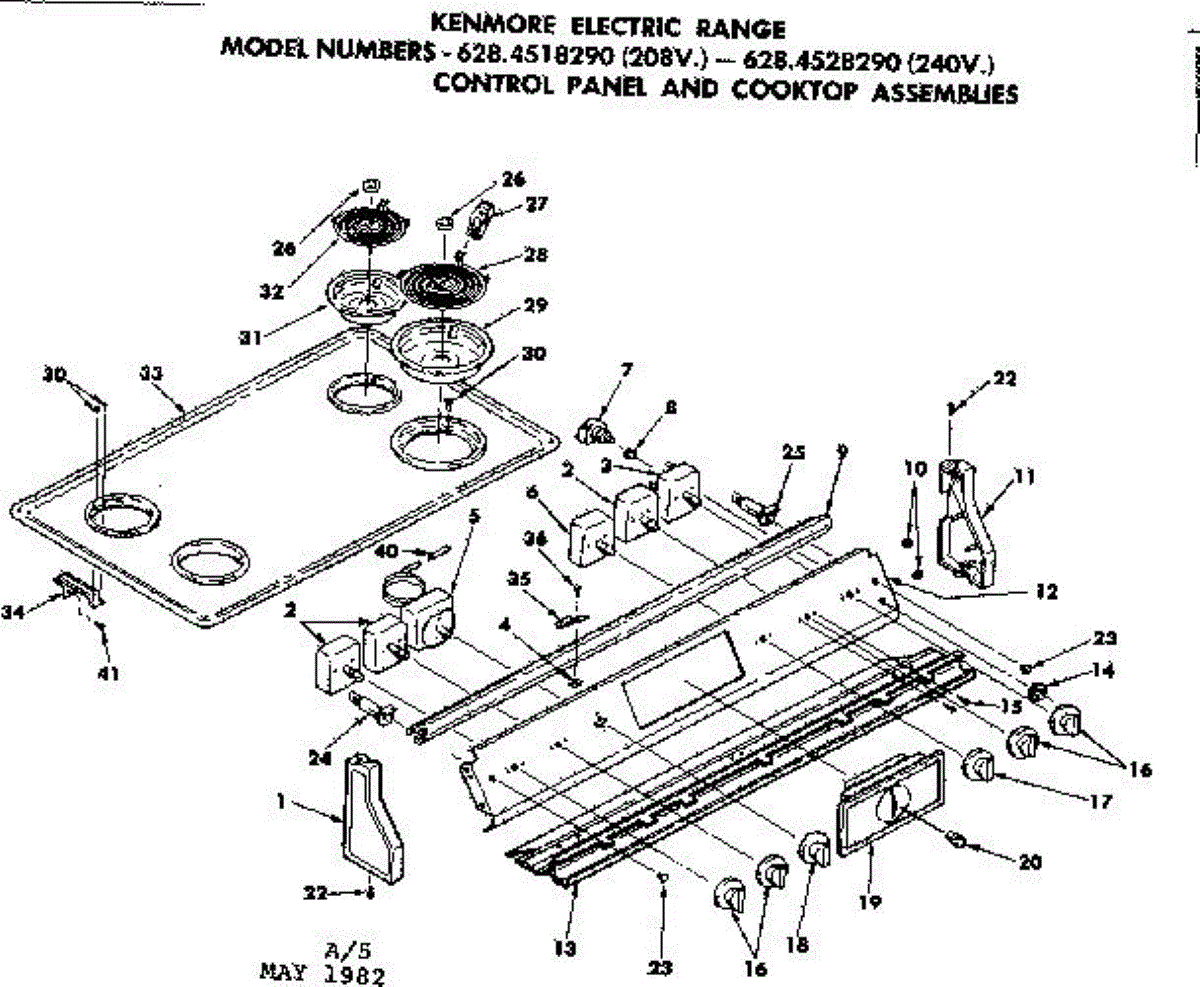 Parts for Kenmore 628.4528290 (6284528290, 628 4528290): Control Panel And Cooktop Assemblies Parts