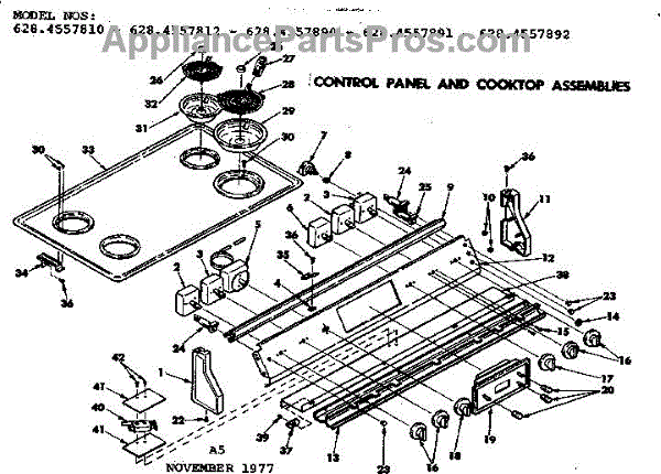 Parts for Kenmore 628.4557892 (6284557892, 628 4557892): Control Panel And Cooktop Assemblies Parts