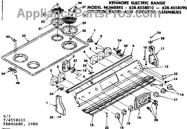 Parts for Kenmore 628.4558010 (6284558010, 628 4558010): Control Panel And Cooktop Assemblies Parts