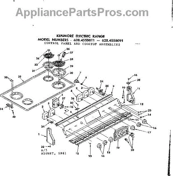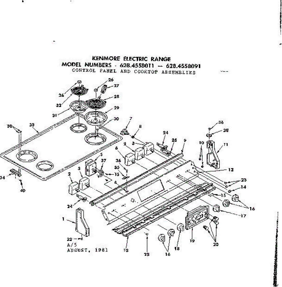 Parts for Kenmore 628.4558091 (6284558091, 628 4558091): Control Panel And Cooktop Assemblies Parts