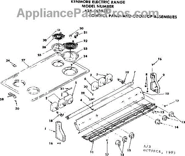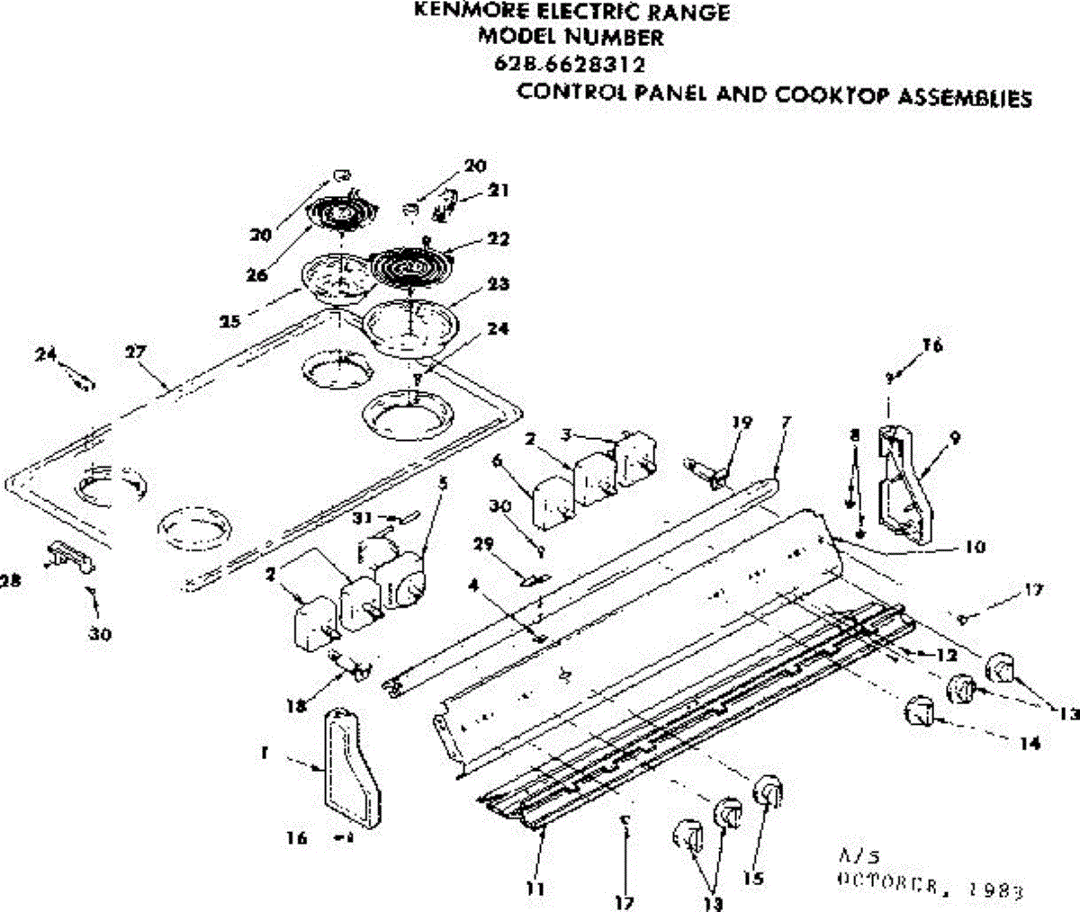 Parts for Kenmore 628.6628312 (6286628312, 628 6628312): Control Panel And Cooktop Assemblies Parts