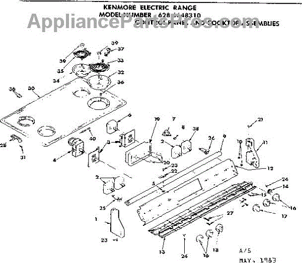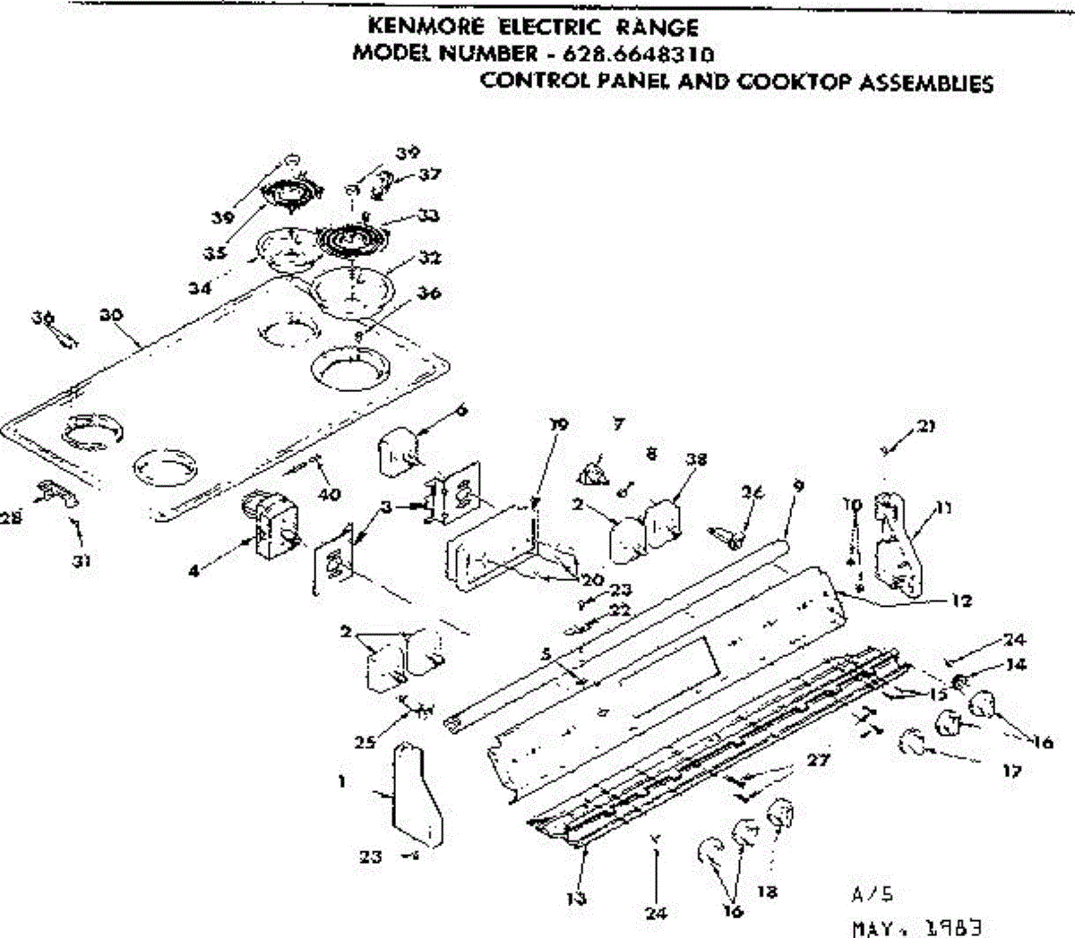Parts for Kenmore 628.6648310 (6286648310, 628 6648310): Control Panel And Cooktop Assemblies Parts