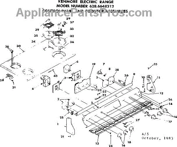 Parts for Kenmore 628.6648312 (6286648312, 628 6648312): Control Panel And Cooktop Assemblies Parts