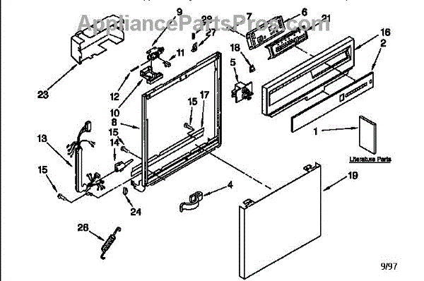 Structural door frame for dishwashers. Mounts to the tub and supports the door panel. Replace if cracked, rusted, warped, or damaged from corrosion.