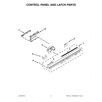The Door Latch Assembly is an OEM part for Whirlpool dishwashers. It ensures a secure latch and seal for the dishwasher door during operation.