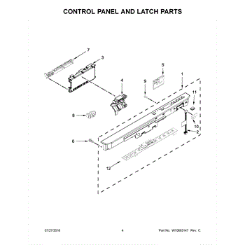 The Console (stl) is an OEM part for Whirlpool stainless steel dishwashers. Located at the front of the tub opening, this stainless steel console surrounds and protects the control panel. Causes of damage to the console can include normal wear over time from fingerprints and minor impacts as it is regularly touched. Exposure to moisture during cleaning could potentially cause corrosion. Symptoms requiring replacement include: