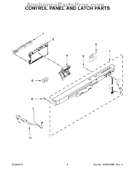 The Console (stl) is an OEM part for Whirlpool stainless steel dishwashers. Located at the front of the tub opening, this stainless steel console surrounds and protects the control panel. Causes of damage to the console can include normal wear over time from fingerprints and minor impacts as it is regularly touched. Exposure to moisture during cleaning could potentially cause corrosion. Symptoms requiring replacement include:
