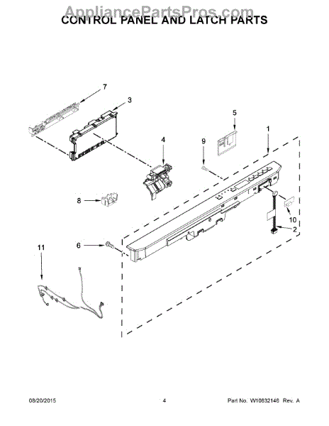 This control panel is the user interface assembly that lets you choose and start cycles, view status, and send commands to the appliance. It restores button control and display feedback so the machine responds correctly to selections. What it does: