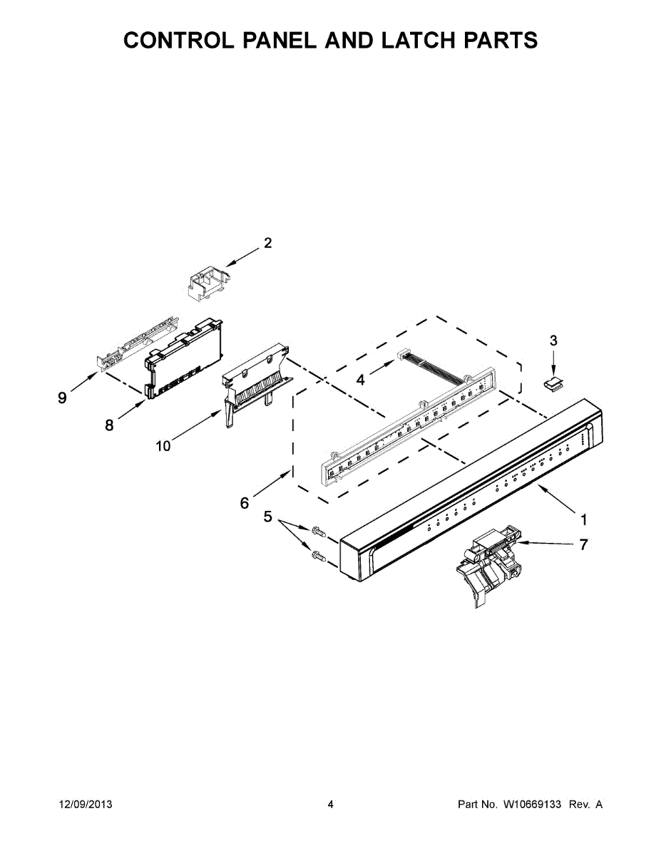 User interface housing for dishwashers. Protects and mounts the control board and display panel. Replace if cracked, broken, or damaged from impact.