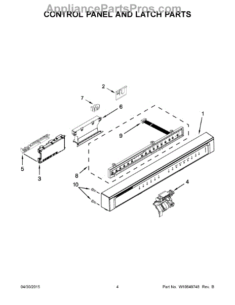 This control panel is the appliance's front console and user interface assembly; it restores responsive cycle selection, clear status displays, and consistent button operation so your appliance responds to commands reliably. What it does: