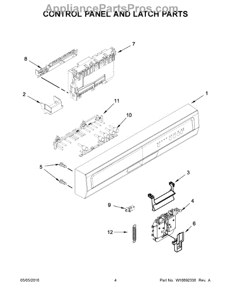 Parts for Whirlpool WDP340PAFB0: 03 - Control Panel And Latch Parts