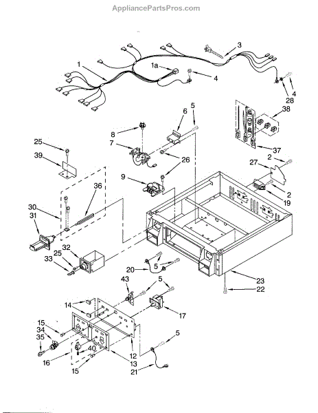 Bracket extension for dryers and laundry centers. Mounts to provide structural support for internal components. Replace if bent, broken, or missing.