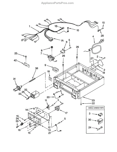 Bracket extension for dryers and laundry centers. Mounts to provide structural support for internal components. Replace if bent, broken, or missing.