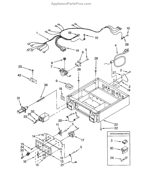 Bracket extension for dryers and laundry centers. Mounts to provide structural support for internal components. Replace if bent, broken, or missing.