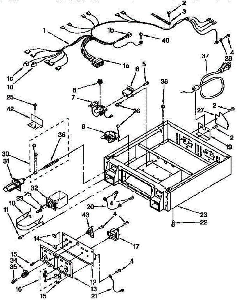 Bracket extension for dryers and laundry centers. Mounts to provide structural support for internal components. Replace if bent, broken, or missing.