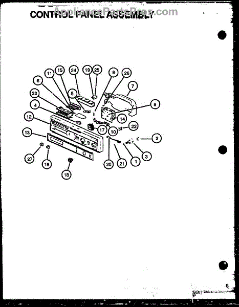 Parts for Caloric DUS600B/P1139732NB: Control Panel Assembly (Gax100l / P1139727nl) (Dus200w / P1139728nw) (Dus300l / P1139729nl) (Dus300b / P1139729nb) (Dus400b / P1139730nb) (Dus500b / P1139731nb) (Ddw550b / P1139735nb) Parts