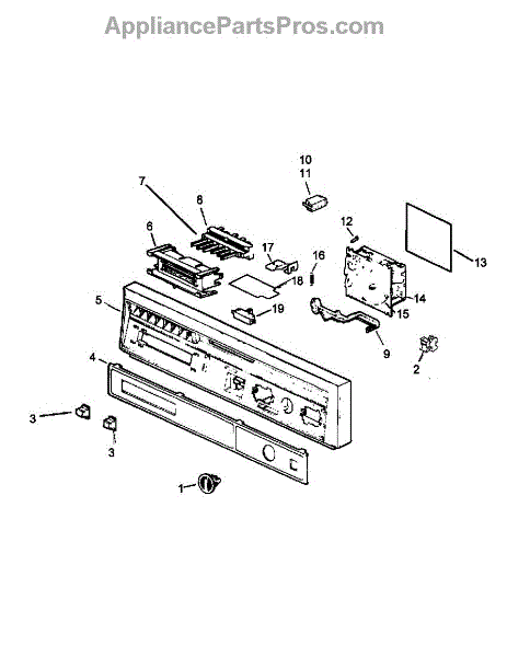Parts for Caloric CDU220DB-P1309606W: Control Panel Assembly Parts