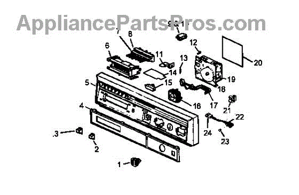 Parts for Caloric CDU510CWW/P1199009W: Control Panel Assembly Parts