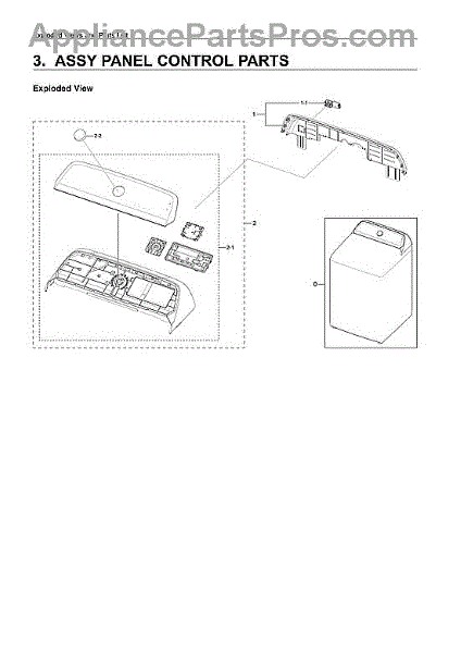 Parts for Samsung WA50R5400AV/US-02: Control Panel Assy Parts