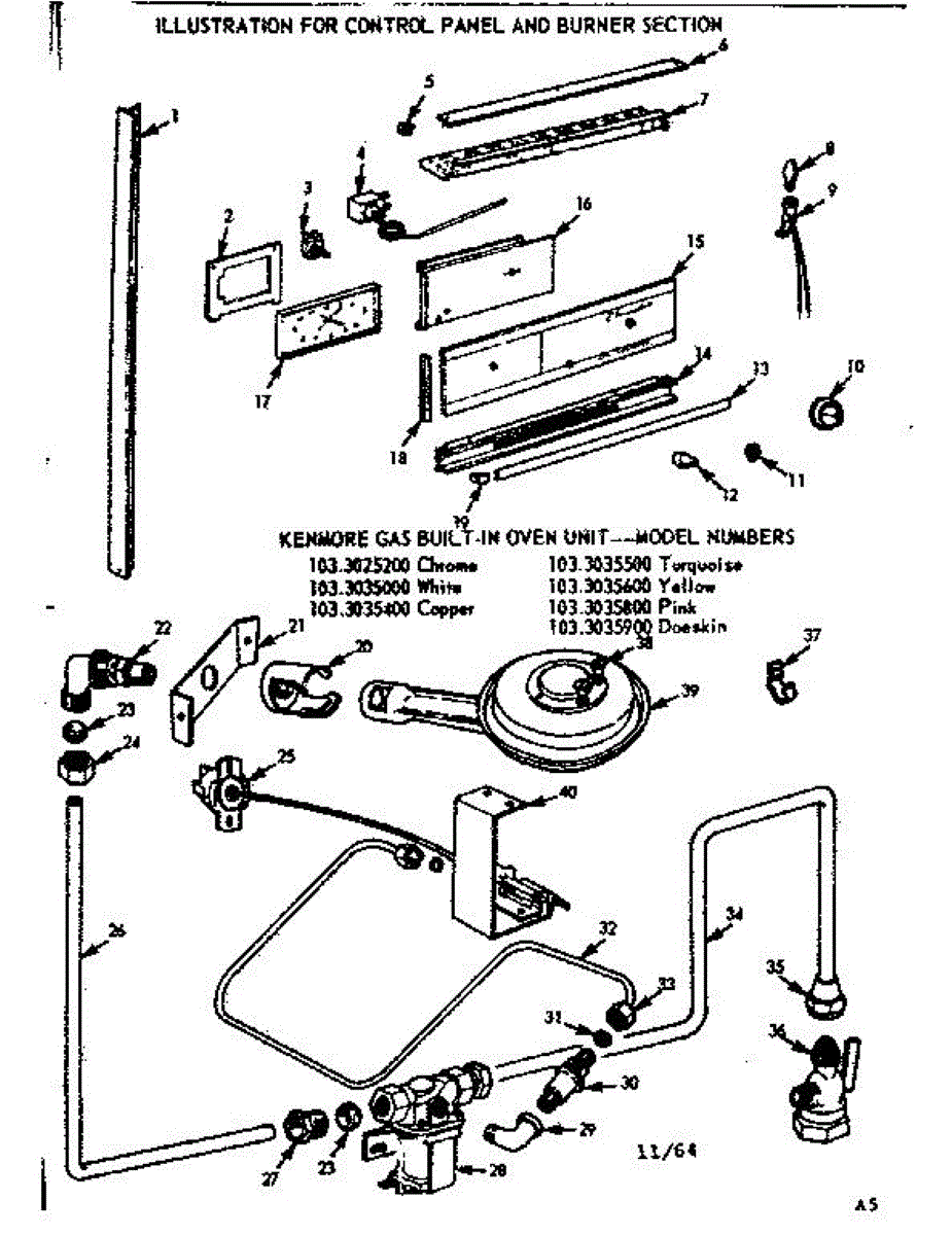 Parts for Kenmore 103.3035000 (1033035000, 103 3035000): Control Panel And Burner Section Parts