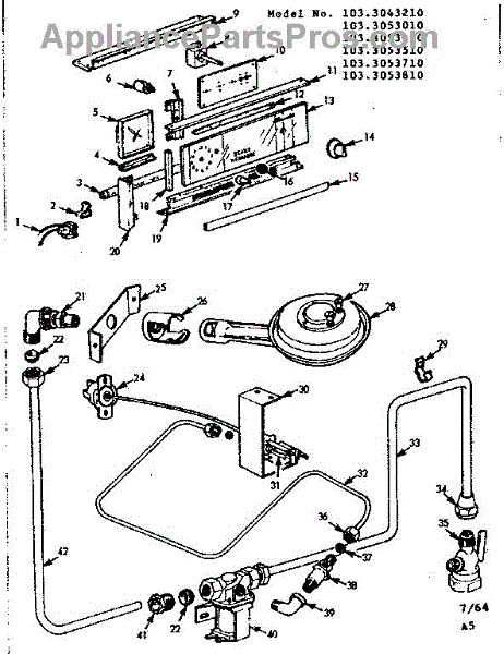 Parts for Kenmore 103.3053410 (1033053410, 103 3053410): Control Panel And Burner Section Parts