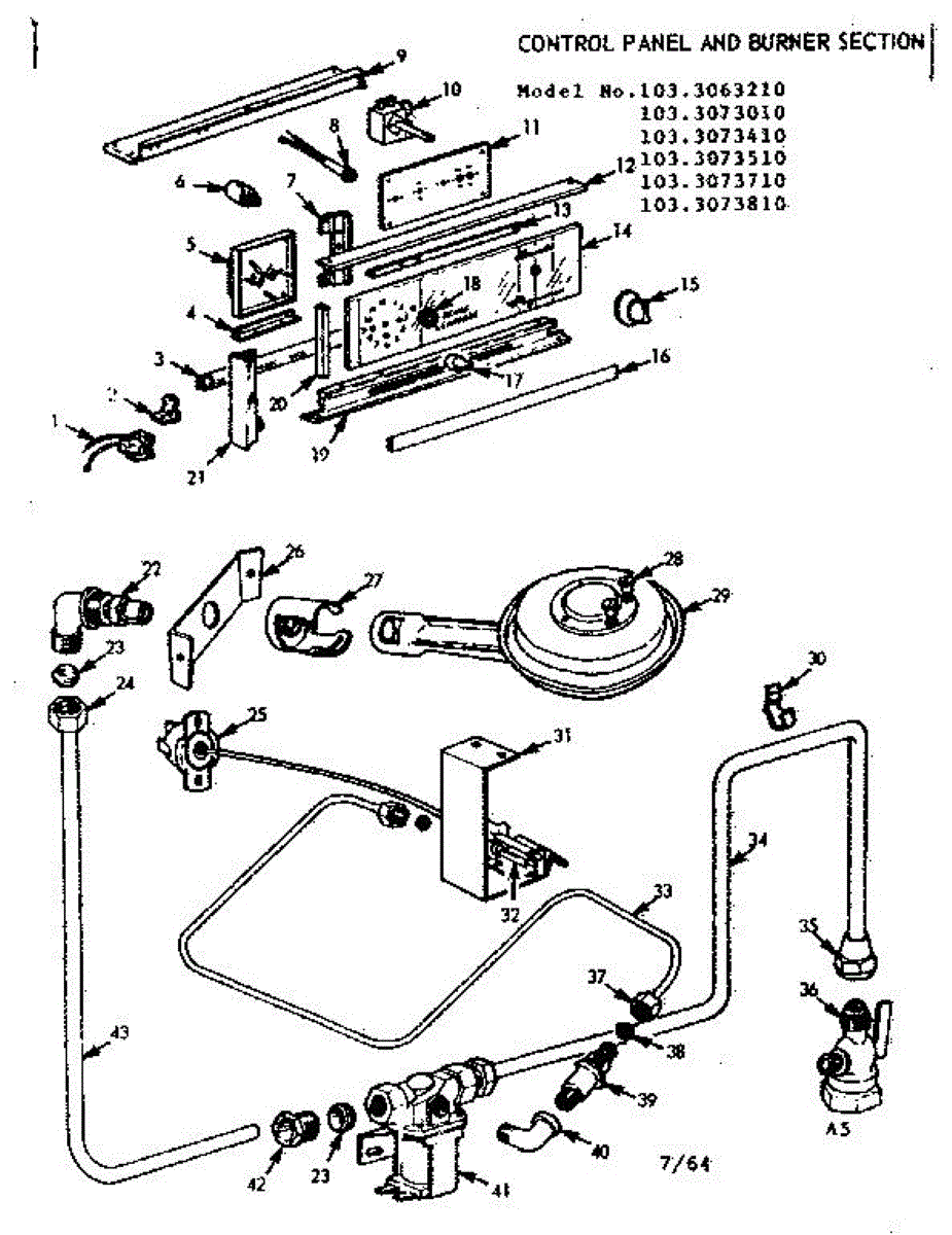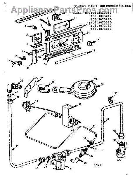 Parts for Kenmore 103.3073010 (1033073010, 103 3073010): Control Panel And Burner Section Parts