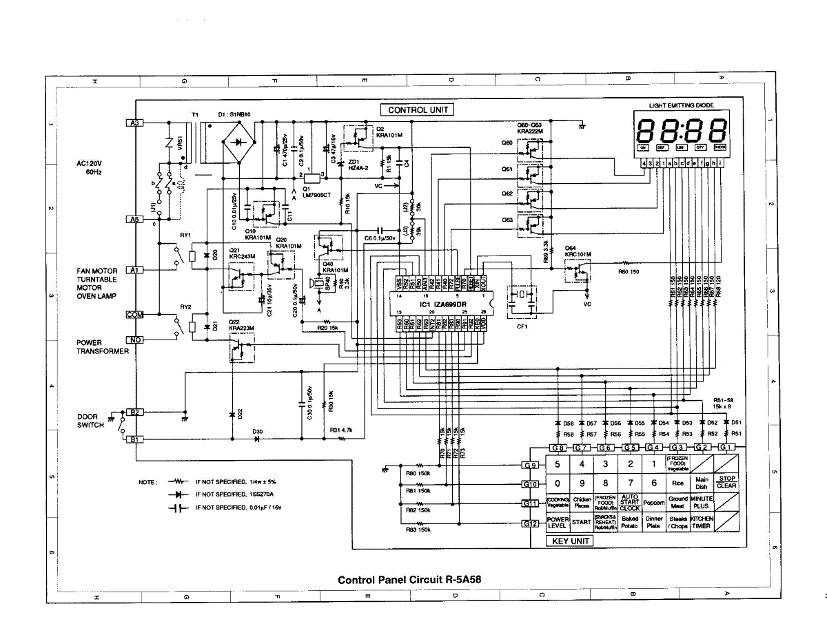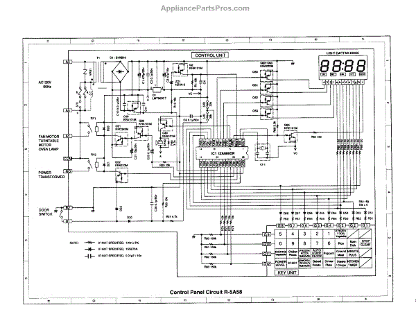 Parts for Sharp R-5A38: Control Panel Circuit R-5A58 Parts