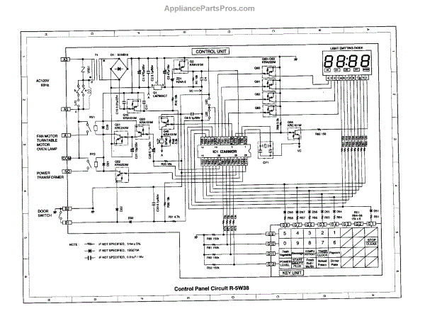 Parts for Sharp R-5A58: Control Panel Circuit R-5W38 Parts