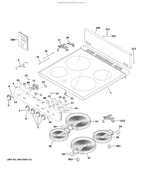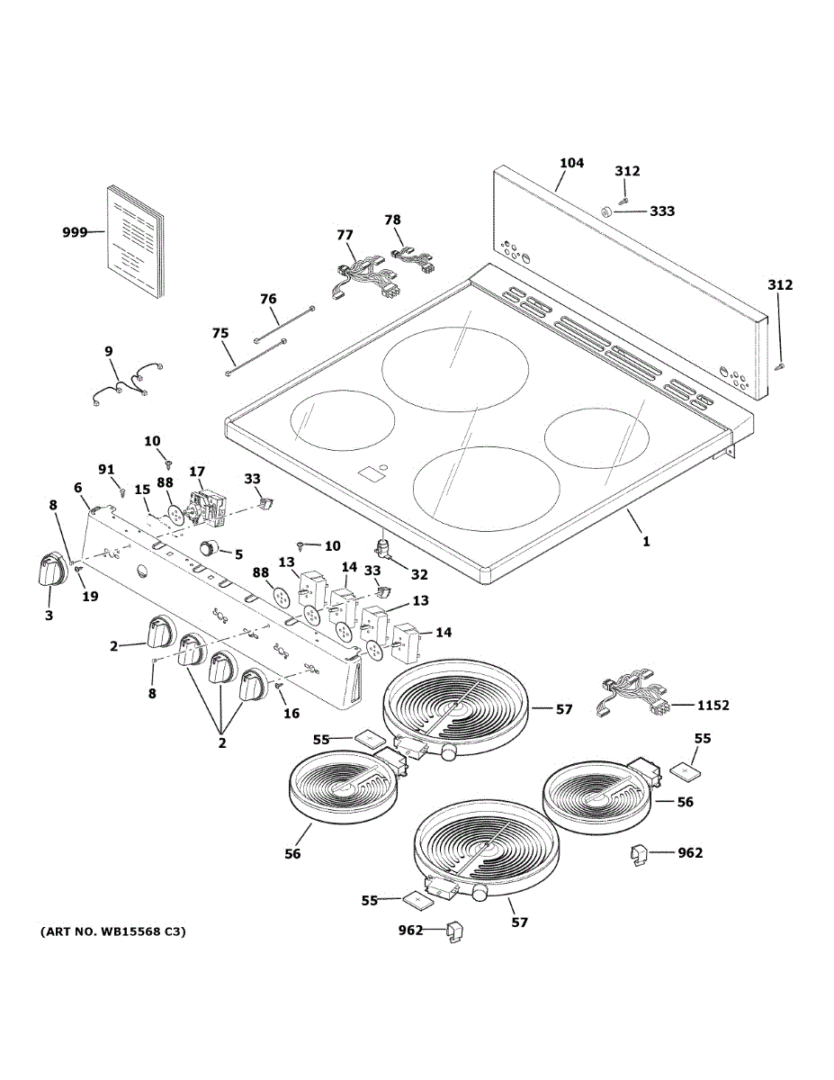 Parts for Ge JAS640RM4SS: Control Panel & Cooktop Parts