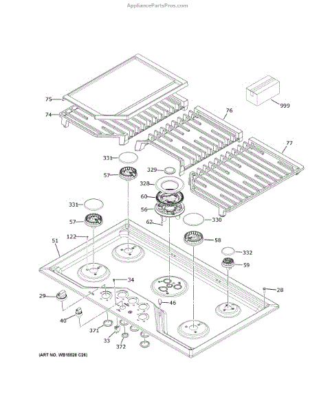 The GRATE (Right) is an OEM component specifically designed for GE gas cooktops. This grate sits over one of the cooktop burners and serves as a durable, heat resistant surface for cooking pots and pans.