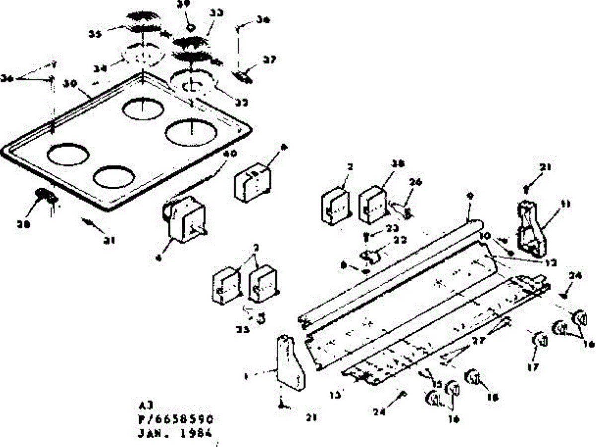 Parts for Kenmore 628.6628590 (6286628590, 628 6628590): Control Panel & Cooktop Assemblies Parts
