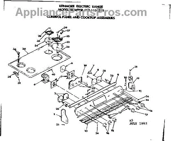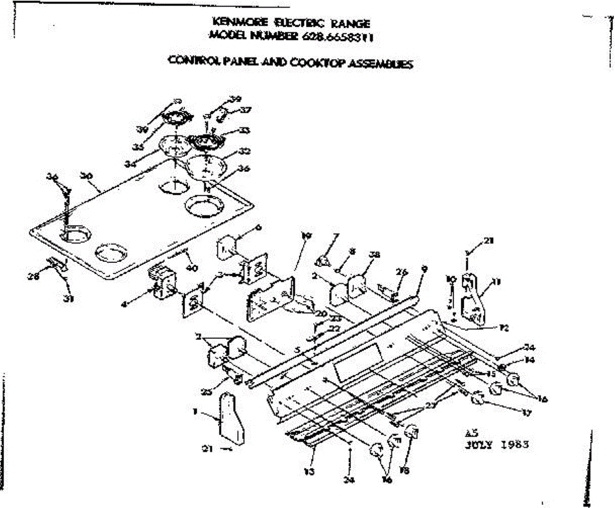 Parts for Kenmore 628.6658311 (6286658311, 628 6658311): Control Panel & Cooktop Assemblies Parts