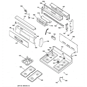 Top support plate for gas ranges. Mounts beneath the cooktop surface to provide structural reinforcement. Replace if cracked, bent, or damaged.