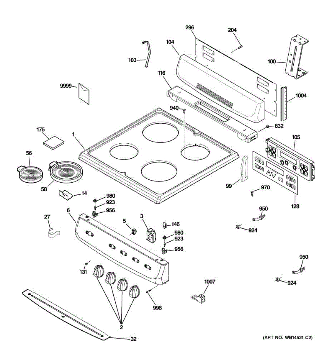 Glass cooktop assembly for ranges. Replaces cracked, chipped, or broken glass surfaces. Installs as the main top cover over burner components.