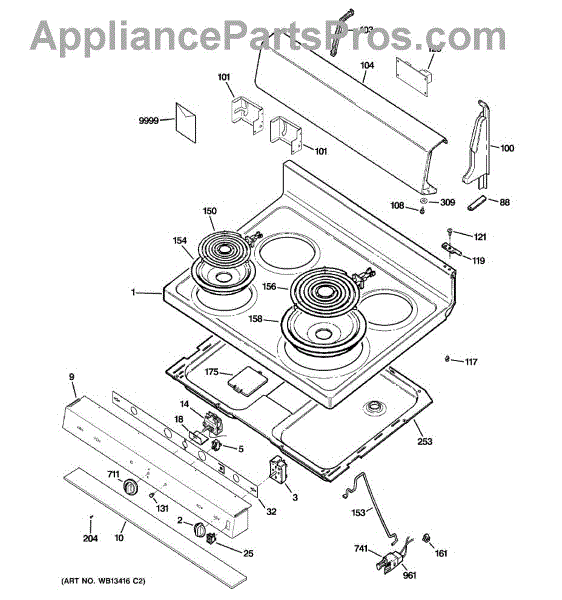 Cooktop box assembly for electric ranges. Houses and supports the cooktop surface. Replace if cracked, damaged, warped, or showing structural wear.