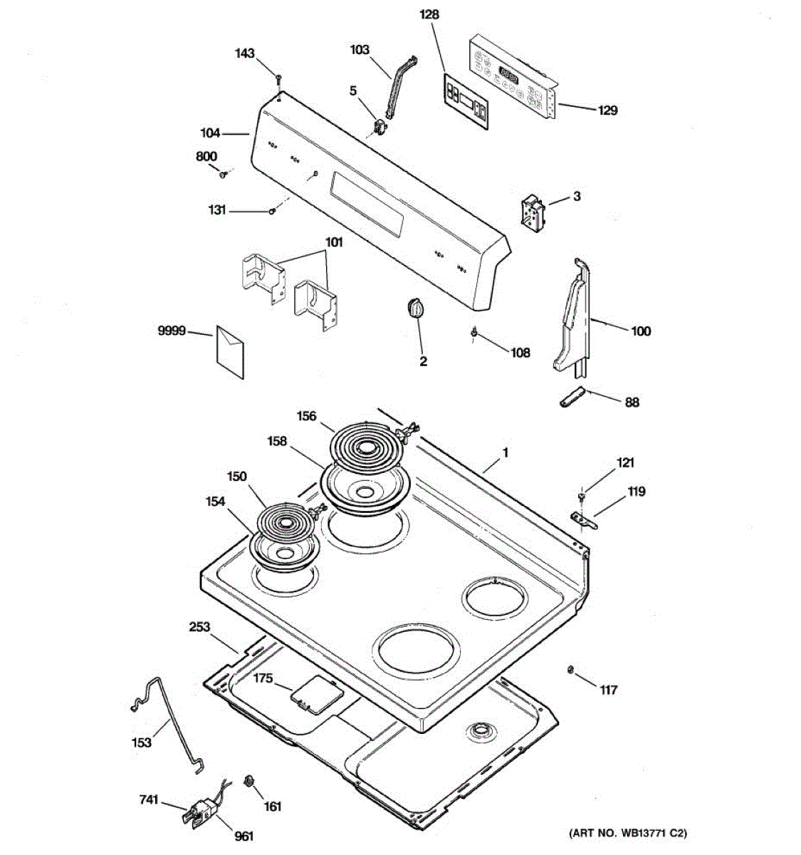 Metal main top cooktop surface for electric ranges. Replaces cracked, warped, rusted, or damaged tops. Restores flat cooking surface and appearance.