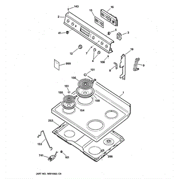 Parts for Ge JBP46WIY3: 01 - Control Panel & Cooktop Parts