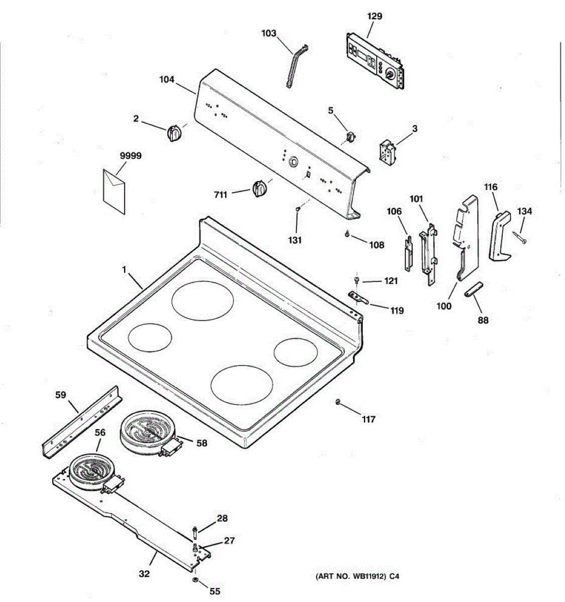 Burner not heating? This 8-inch haliant element often fails when ribbon elements burn out. Requires lifting cooktop to access and replace.