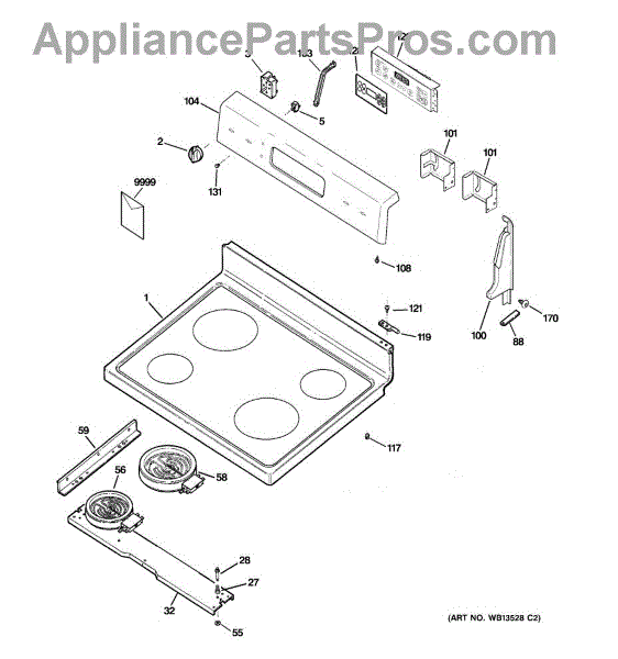 Parts for Ge JBP60BH2WH: 01 - Control Panel & Cooktop Parts