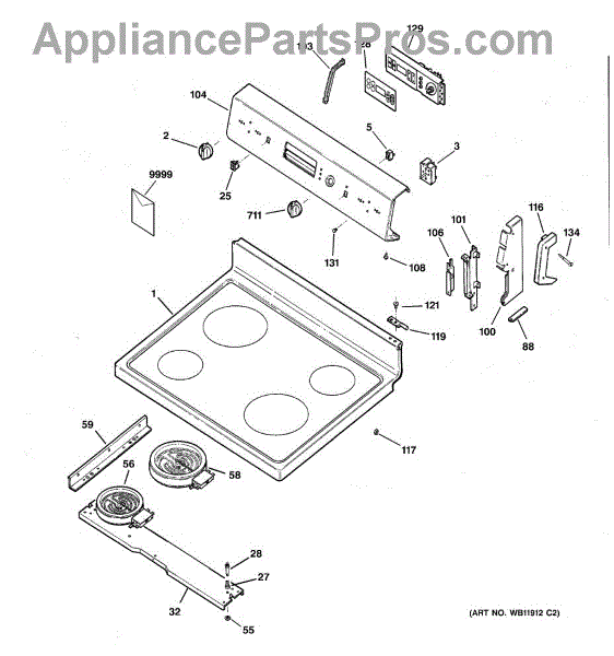 Parts for Ge JBP61BD4WH: 01 - Control Panel & Cooktop Parts