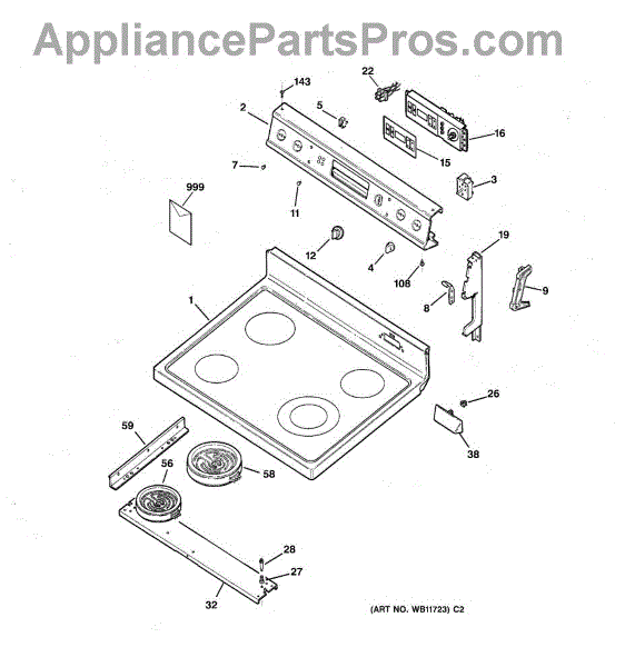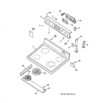 Parts for Ge JBP63BY2WH: 01 - Control Panel & Cooktop Parts
