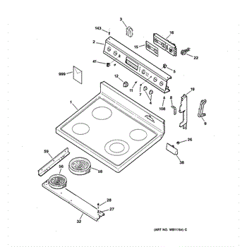 Parts for Ge JBP66DY1AD: 01 - Control Panel & Cooktop Parts