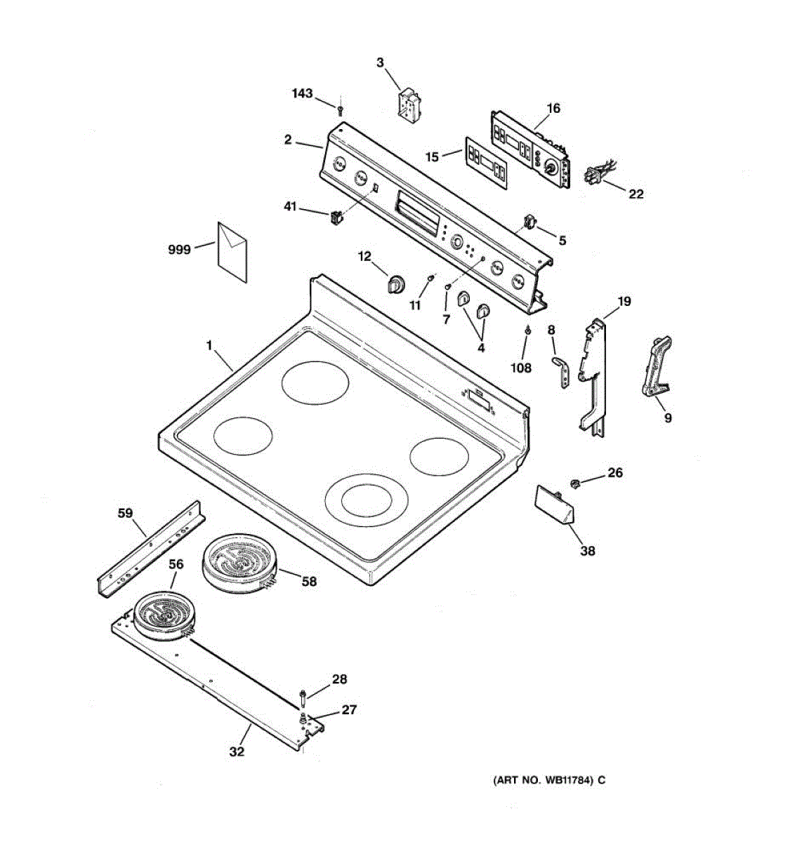 Burner not heating? This 8-inch haliant element often fails when ribbon elements burn out. Requires lifting cooktop to access and replace.