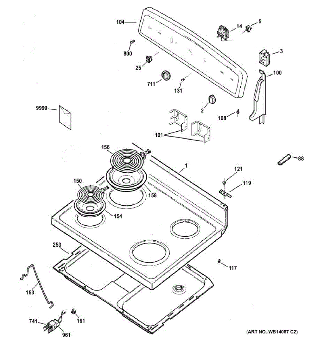 White metal cooktop panel for electric ranges. Replaces chipped, cracked, marred, or discolored main tops. Direct fit surface component for your range.