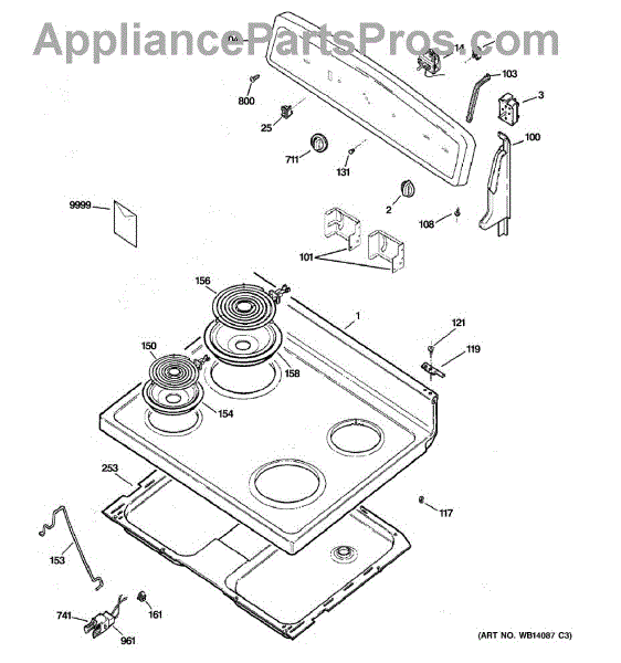 Parts for Ge JBS03M2WH: 01 - Control Panel & Cooktop Parts
