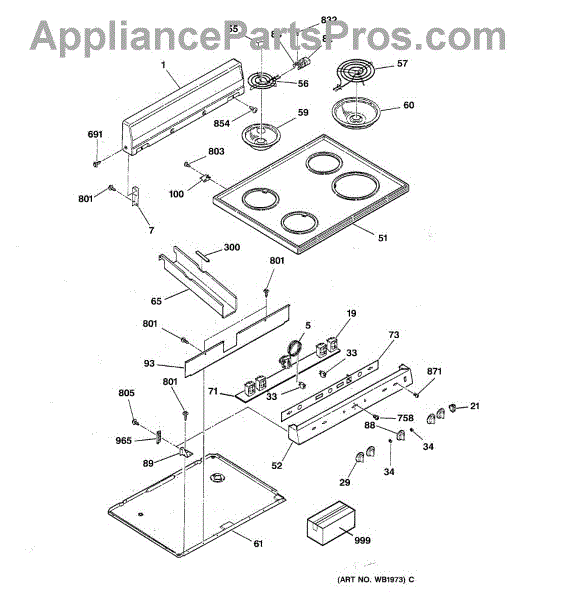 Parts for Ge JBS04V2WH: 01 - Control Panel & Cooktop Parts