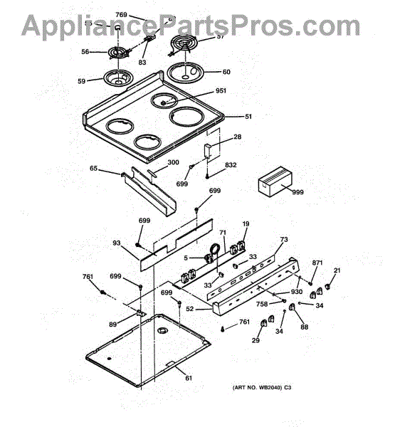 Spacer for cooktop installation. Replaces worn, cracked, or missing spacers that maintain proper clearance between components during mounting.