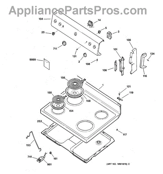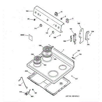 Parts for Ge JBS07C3WW: 01 - Control Panel & Cooktop Parts